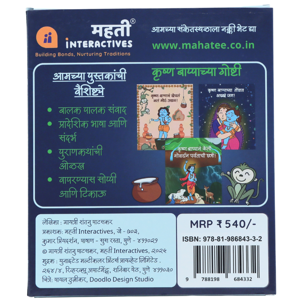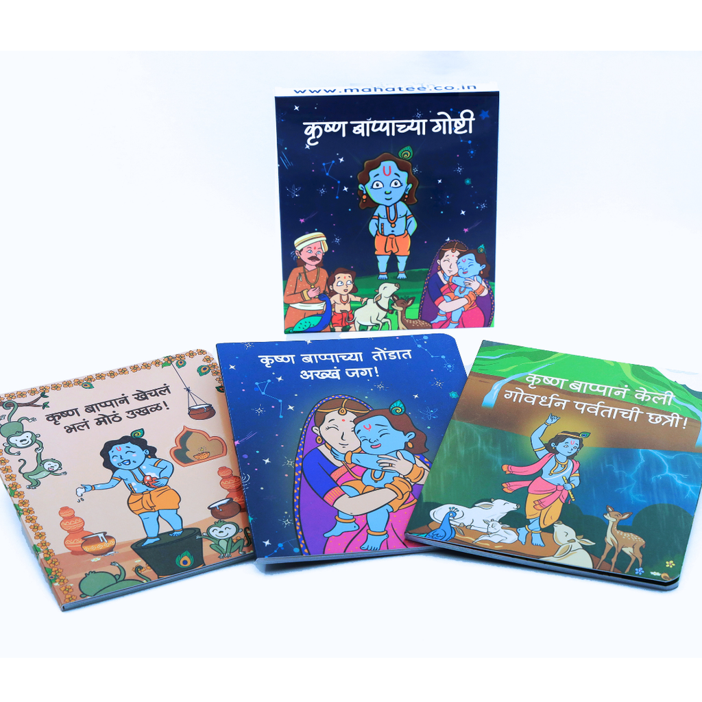 This enchanting collection features three sturdy, colourful board books that narrate some of the most beloved and magical childhood tales of Krishna Bappa.