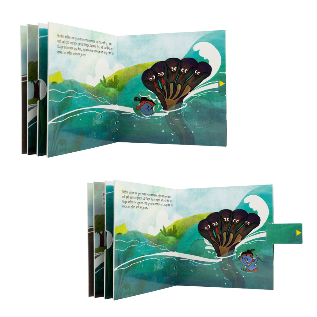Children can become a part of the story by simply pulling, pushing, and sliding the tabs on each page. This simple action reveals hidden illustrations, animates scenes, and keeps little hands and minds engaged from start to finish. Watching Lord Krishna play his flute or the mischievous serpents dance has never been this fun and interactive!